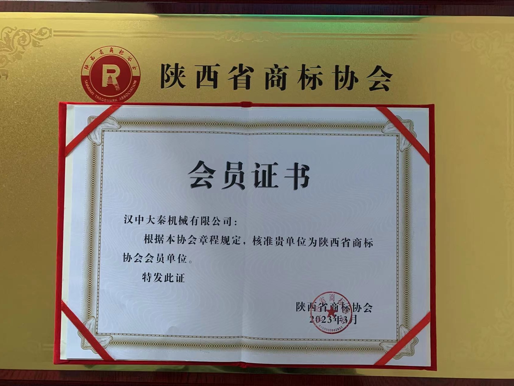3月30日,陜西省商標(biāo)協(xié)會(huì)成立大會(huì)暨會(huì)員大會(huì)在陜西大會(huì)堂舉行,漢中大秦機(jī)械有限公司應(yīng)邀出席會(huì)議,并成為協(xié)會(huì)首批會(huì)員單位。